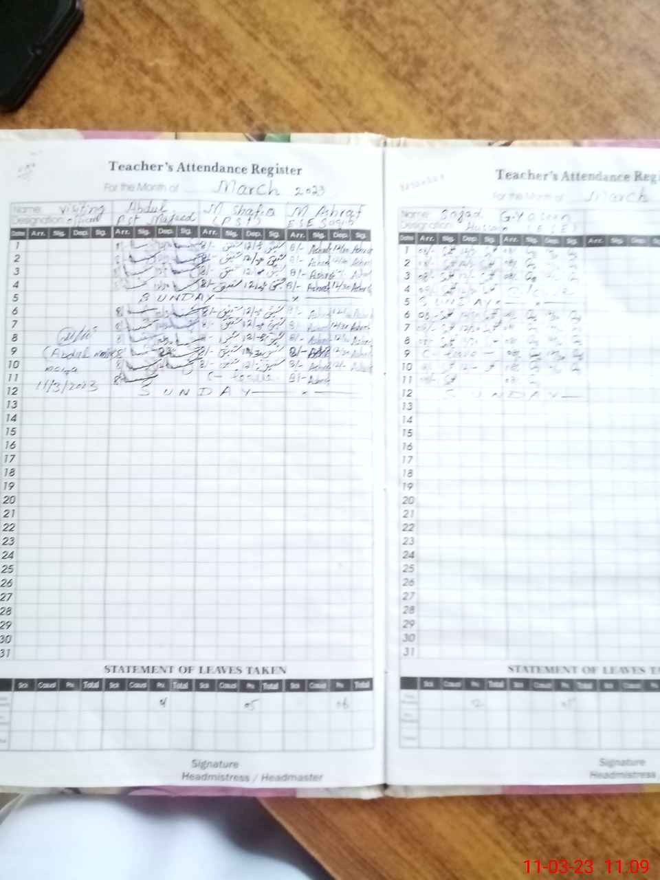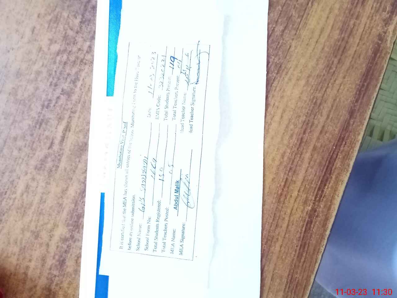 | Attendance Register | Head Teacher | MEA with School | Visit Proof |