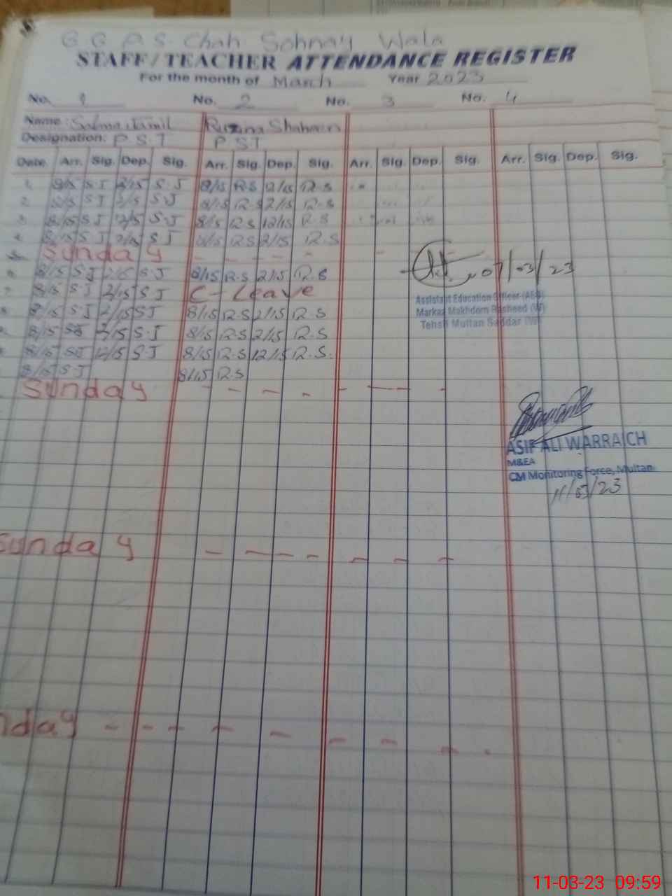 | Name: SA**** JA**** Designation: (School Headmaster's/Headmistress's) PST Phone/Cell Number: 03**** |