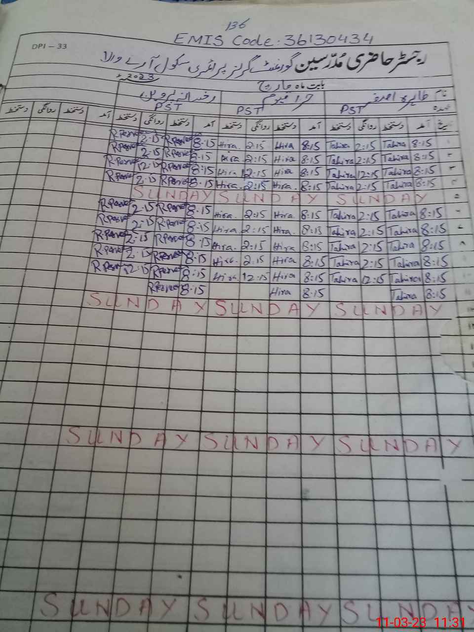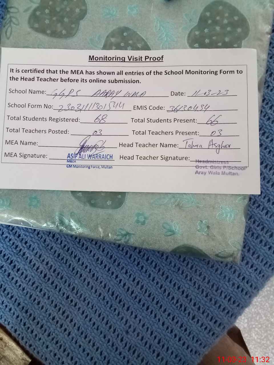 | EMIS Code: 36130434 | Name of School: GGPS AARAY WALA MUZA JHOK LASHAKAR PUR | |||