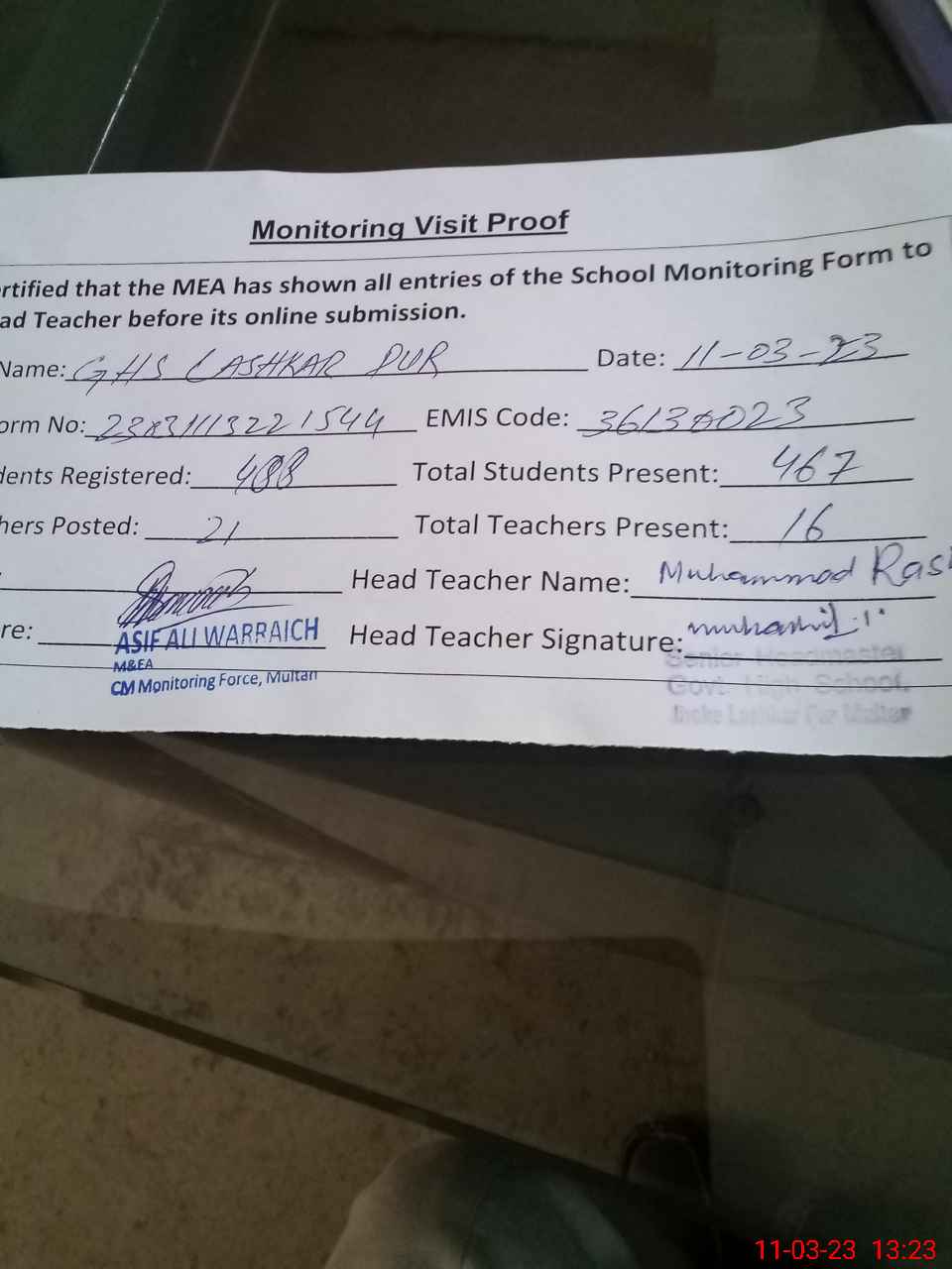 | EMIS Code: 36130023 | Name of School: GHS JHOKE LASHKAR PUR MULTAN | |||