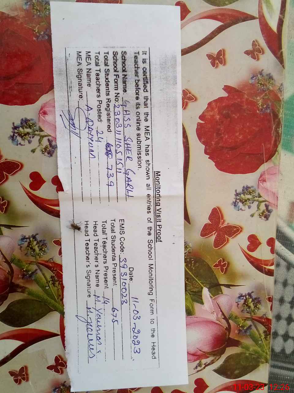 | EMIS Code: 39310023 | Name of School: GHSS SHER GARH | |||