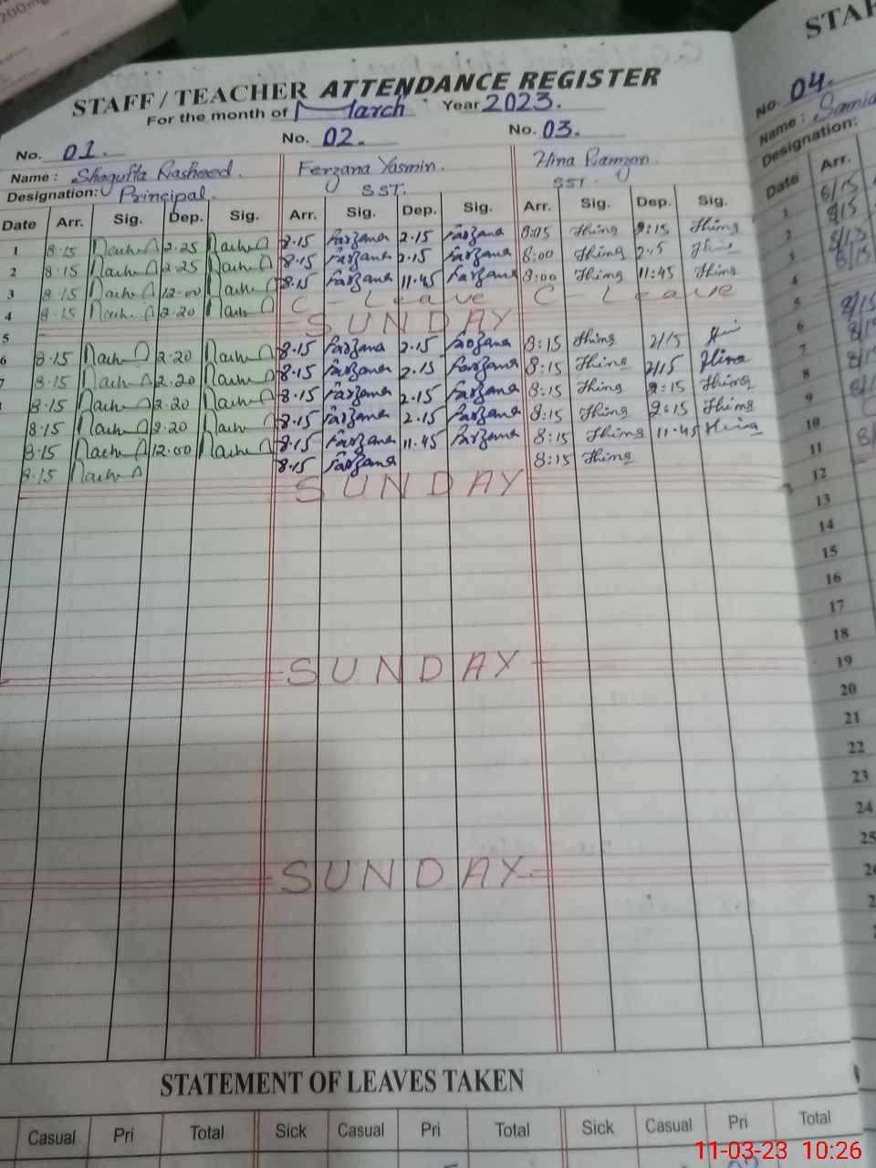 | 33**** | Sh**** Ka**** | PST | Regular | 6 | 0 | 0 | 6 | 0 | 0 | 0 | 0 | 0 | Maternity |