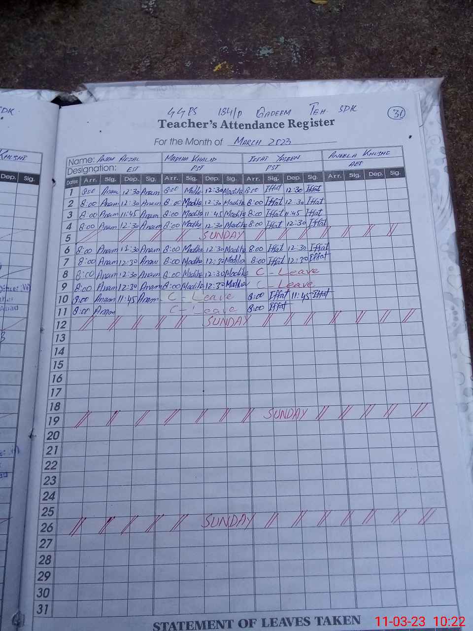 | 31**** | Ma**** Kh**** | PST | Regular | 0 | 0 | 0 | 0 | 0 | 0 | 0 | 0 | 0 | Casual |