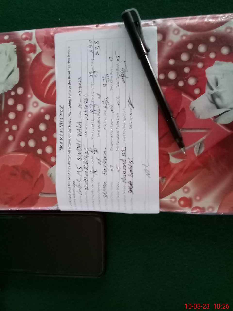 | Monitoring Date: 10-03-2023 | Start Time: 10-03-2023 08:56 AM | End Time: 10-03-2023 10:30 AM | Name of MEA: Kh**** Ba**** | |