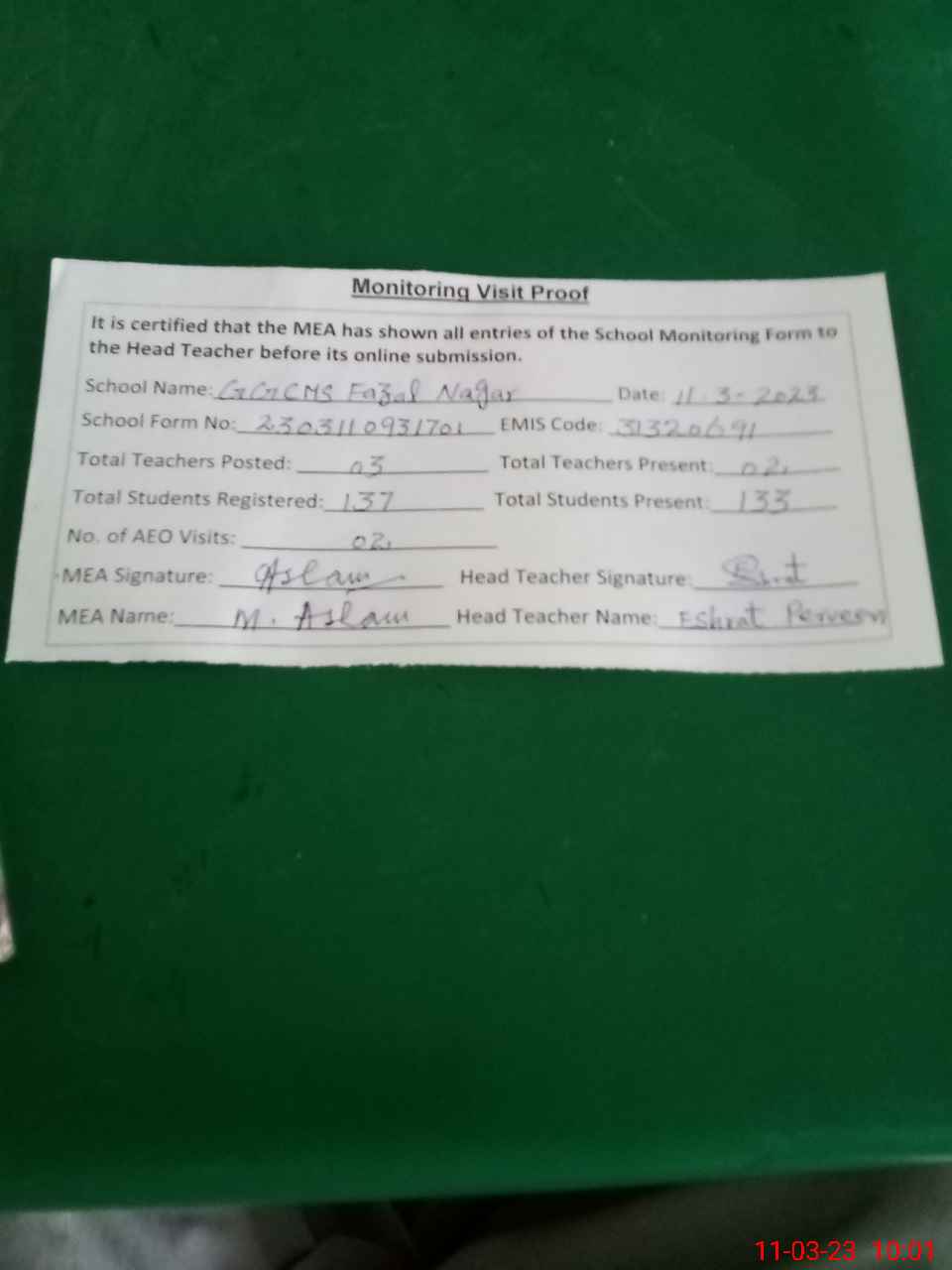 | EMIS Code: 31320691 | Name of School: GGCMS FAZAL NAGAR | |||