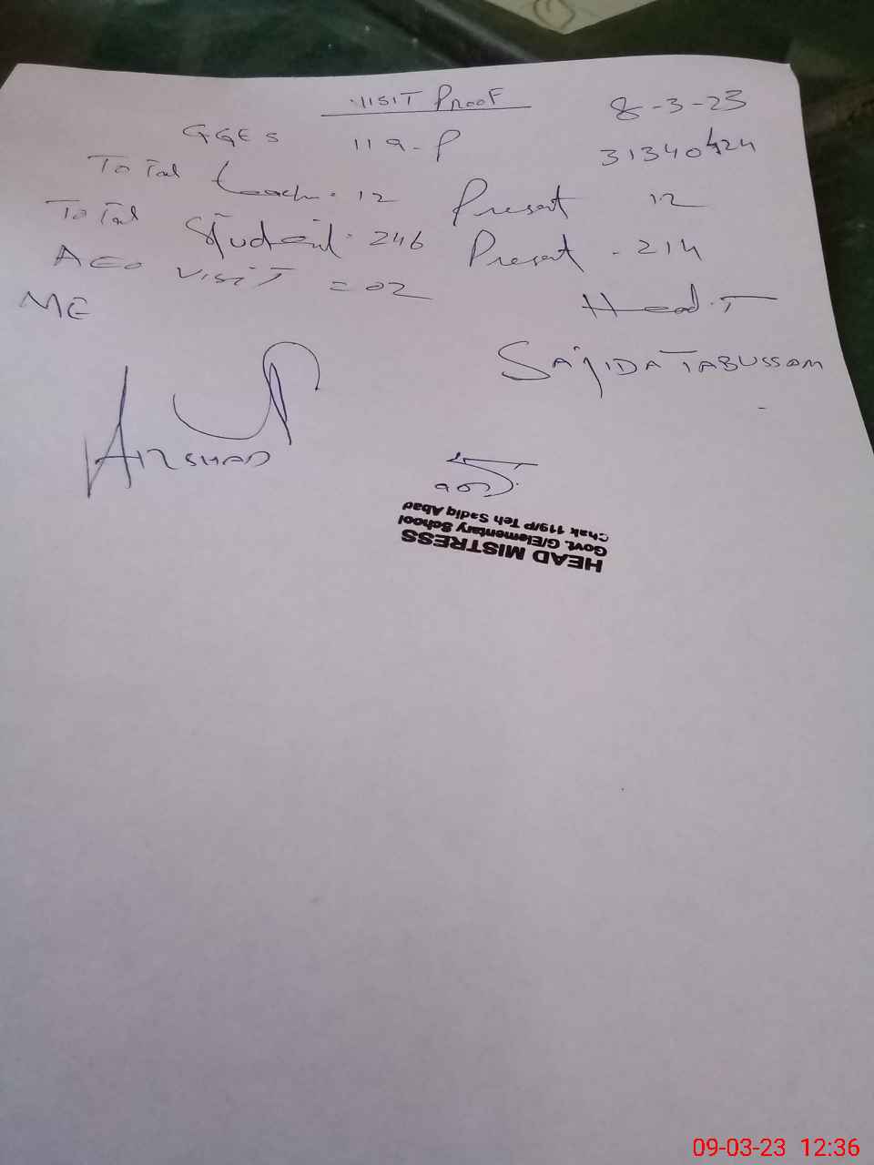 | Attendance Register | Head Teacher | MEA with School | Visit Proof |