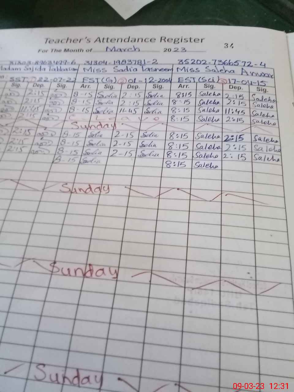 | CNIC | Full Name | Designation | R/C | Absence During Last Calender Month |