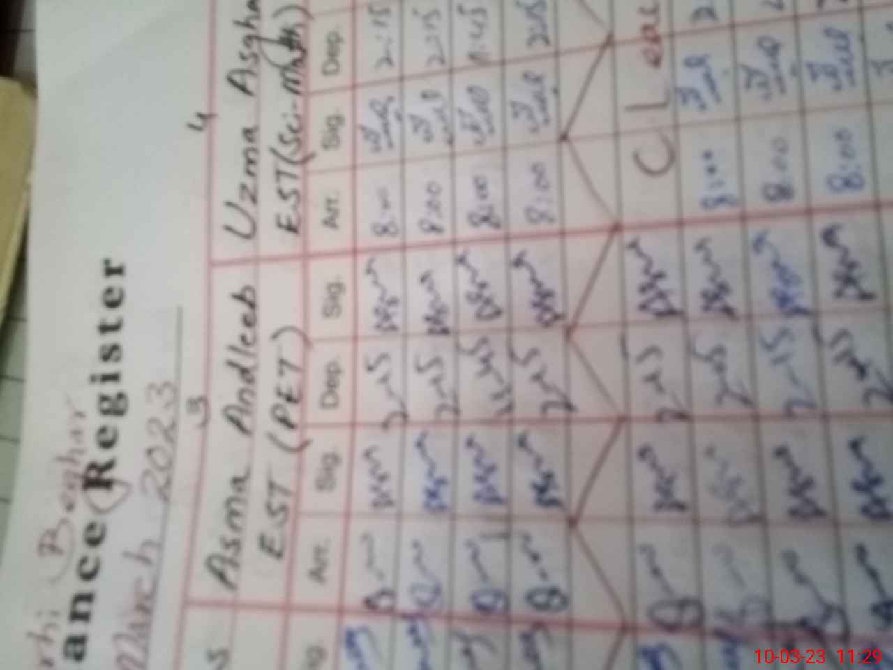 | No. of Students Present - Female | 20 | 0 | 40 | 32 | 40 | 35 | 25 | 26 | 44 | 45 | 30 | 337 | ||||
