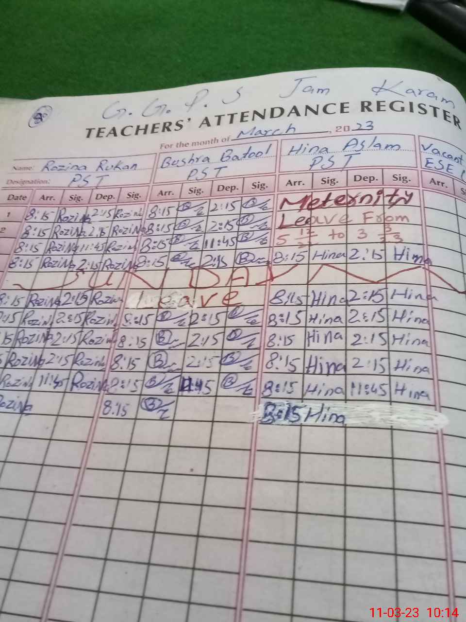 | Leave | Duty | Absent | Maternity | Medical | Ex- Pak |