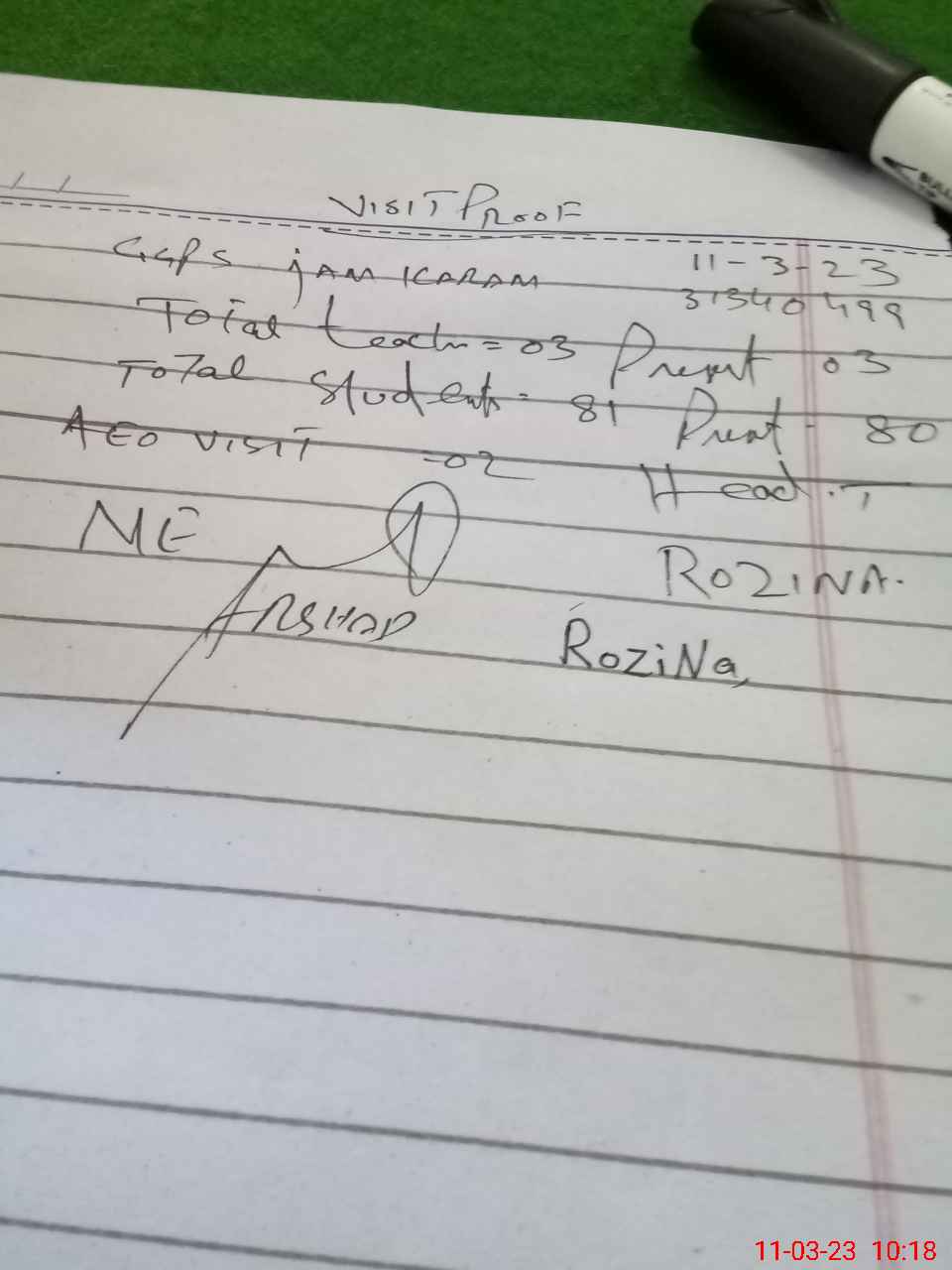 | Attendance Register | Head Teacher | MEA with School | Visit Proof |