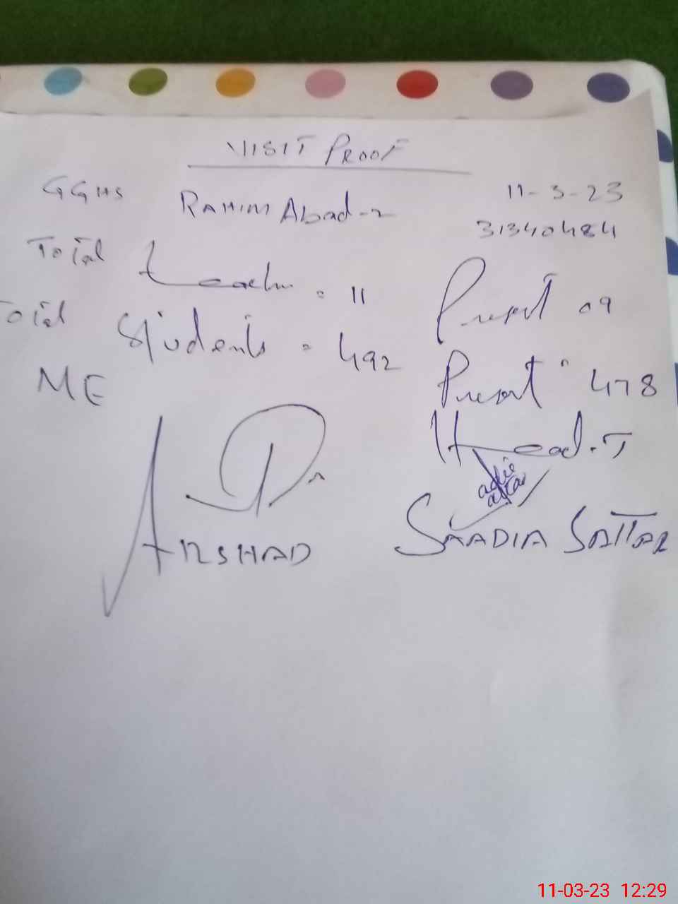 | Attendance Register | Head Teacher | MEA with School | Visit Proof |