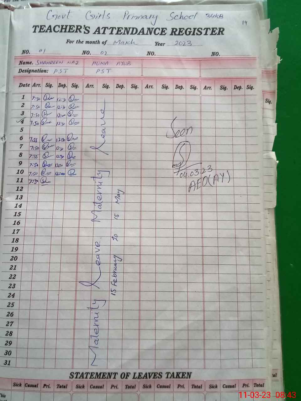 | 35**** | Hu**** Ay**** | PST | Regular | 16 | 0 | 0 | 16 | 0 | 0 | 0 | 0 | 0 | Maternity |