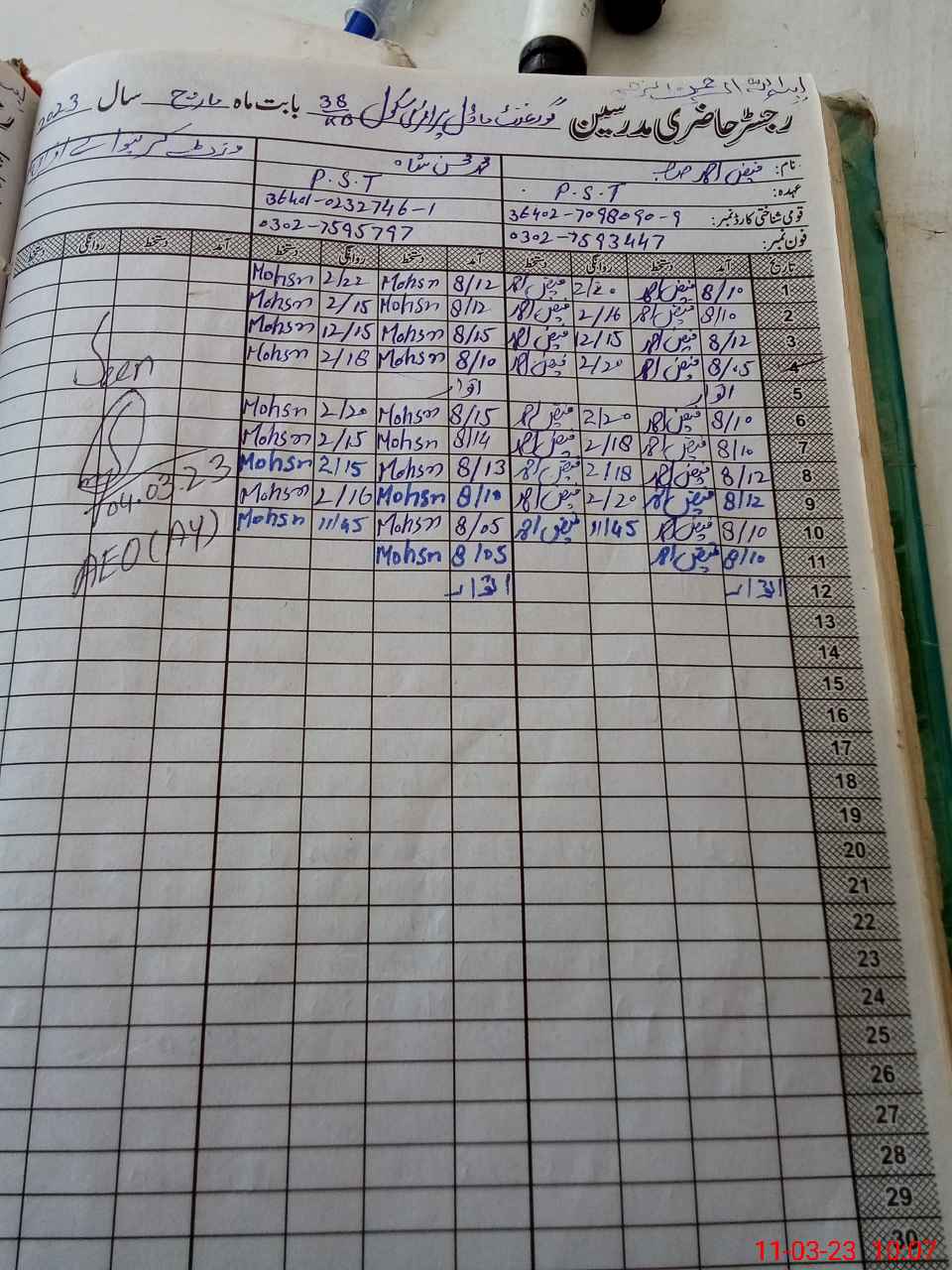 | Name: FA**** AH**** Designation: (School Headmaster's/Headmistress's) PST Phone/Cell Number: 03**** |