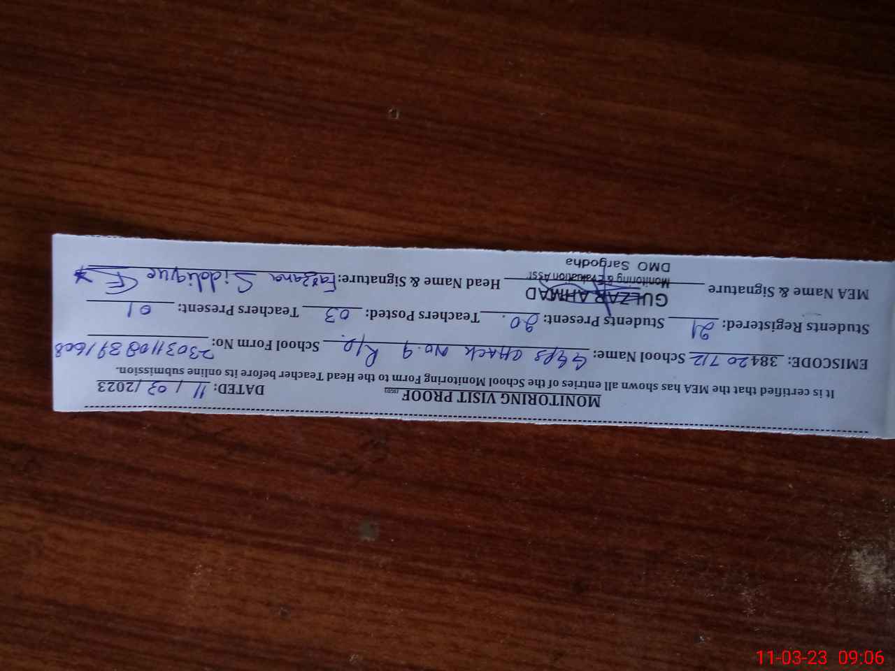 | EMIS Code: 38420712 | Name of School: GGPS CHAK NO.9 REMOUNT DEPOT | |||