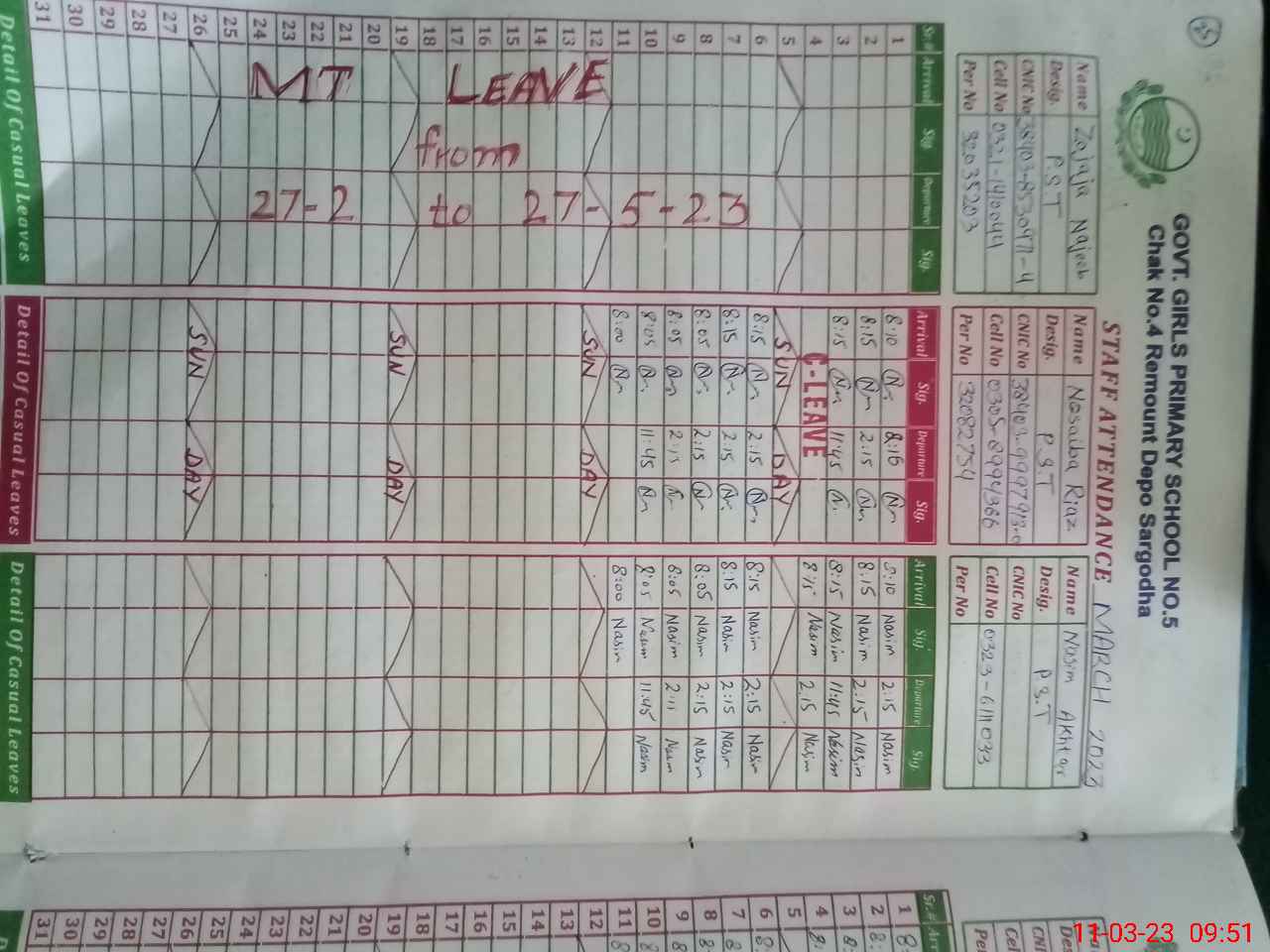 | Name: ZO**** NA**** Designation: (School Headmaster's/Headmistress's) PST Phone/Cell Number: 03**** |