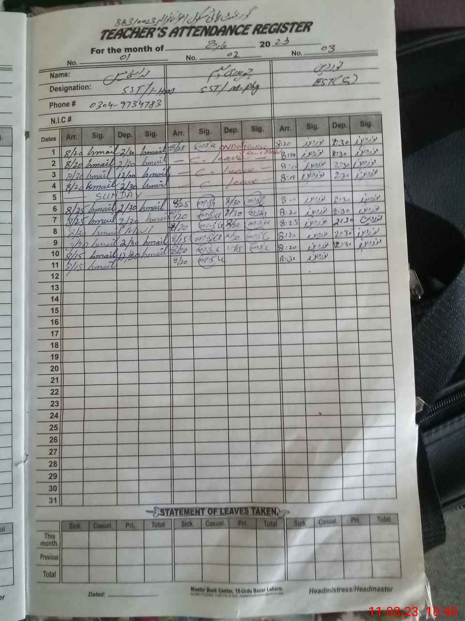 | Name: MIs**** Designation: (School Headmaster's/Headmistress's) Sst Phone/Cell Number: 03**** |