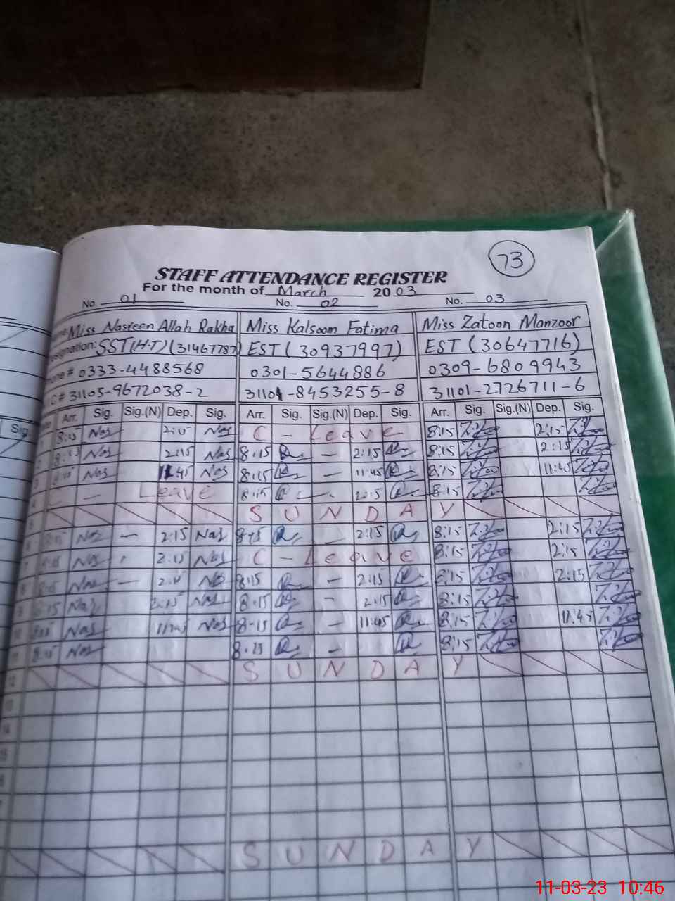 | Name: Na**** Al**** Ra**** Designation: (School Headmaster's/Headmistress's) S.S.T. Sci Phone/Cell Number: 03**** |
