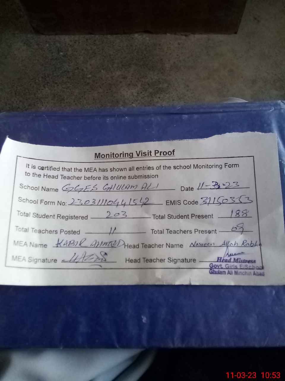 | EMIS Code: 31150353 | Name of School: GGES GHULAM ALI | |||