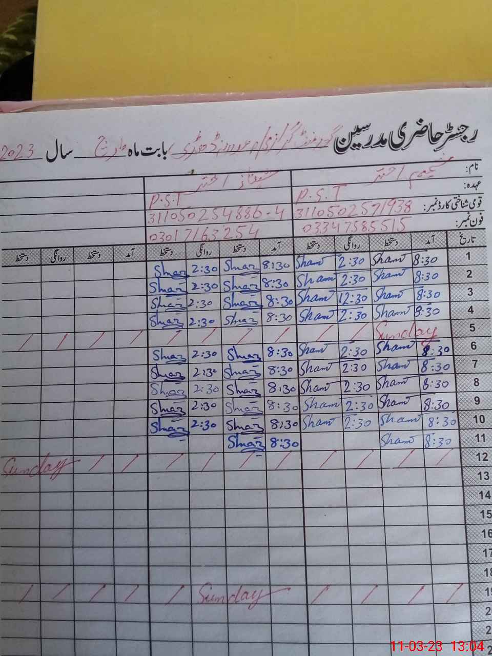 | Name: Sh**** Ak**** Designation: (School Headmaster's/Headmistress's) PST Phone/Cell Number: 03**** |