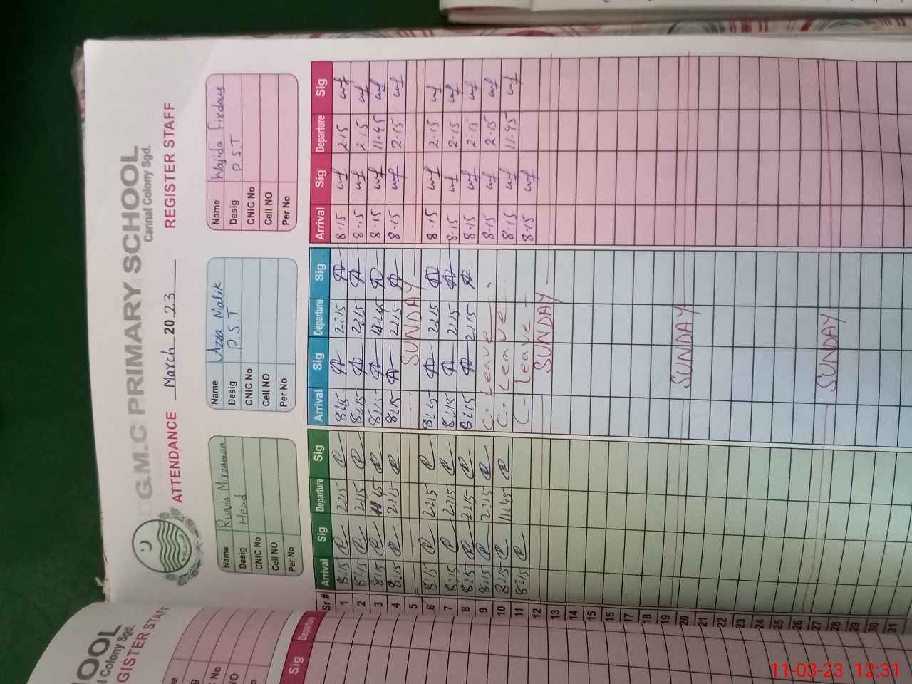 | CNIC | Full Name | Designation | R/C | Absence During Last Calender Month |