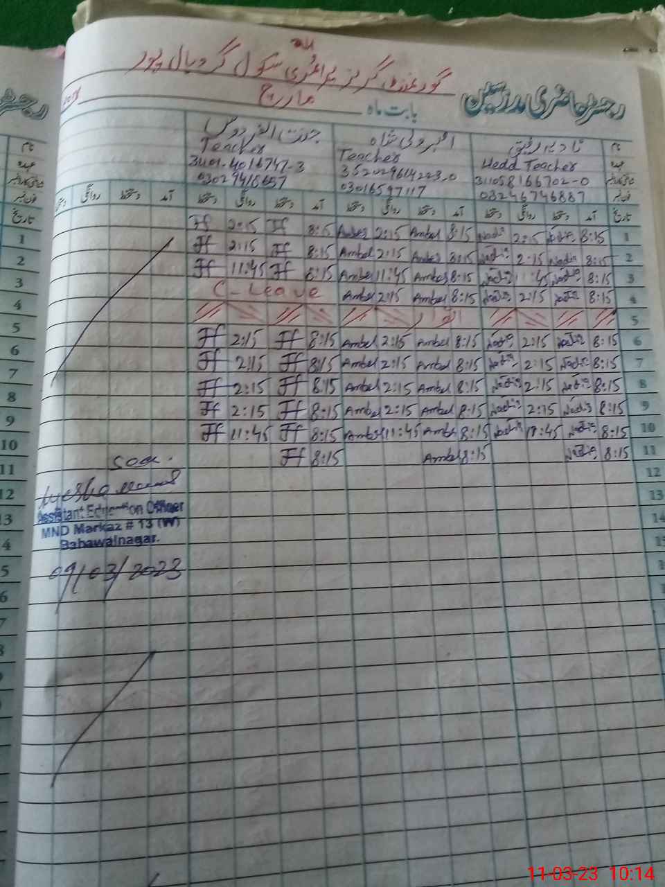 | Name: Na**** Ra**** Designation: (School Headmaster's/Headmistress's) PST Phone/Cell Number: 03**** |