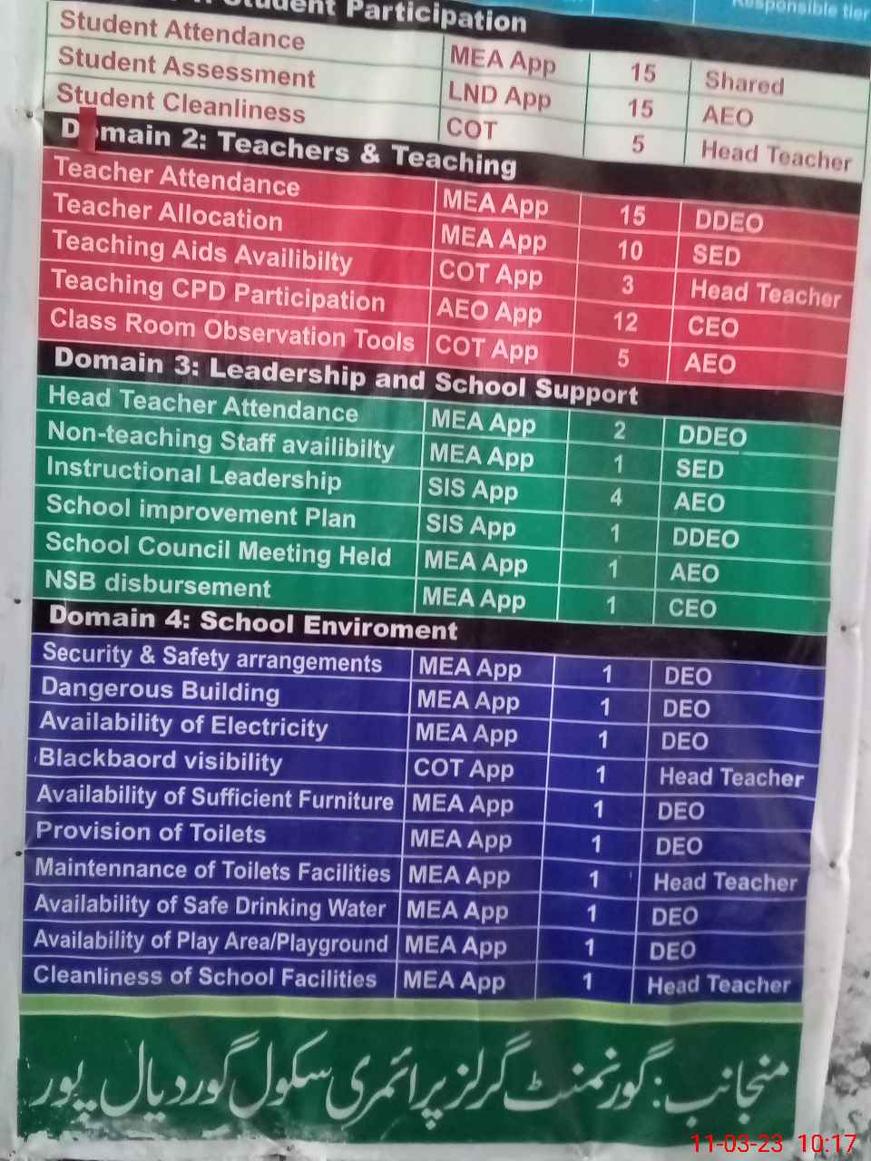 | Certified that this School was Inspected by the Undersigned MEA/DMO Today and the Information Stated Above is as Per Record. | |||||