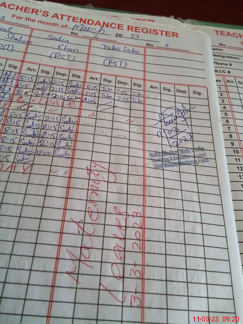 | Name: Mu**** Sh**** Designation: (School Headmaster's/Headmistress's) PST Phone/Cell Number: 03**** |