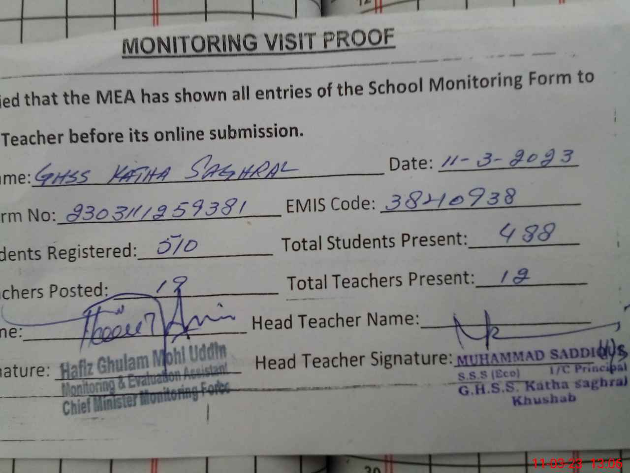 | EMIS Code: 38210938 | Name of School: GHSS KATHA SAGHRAL | |||