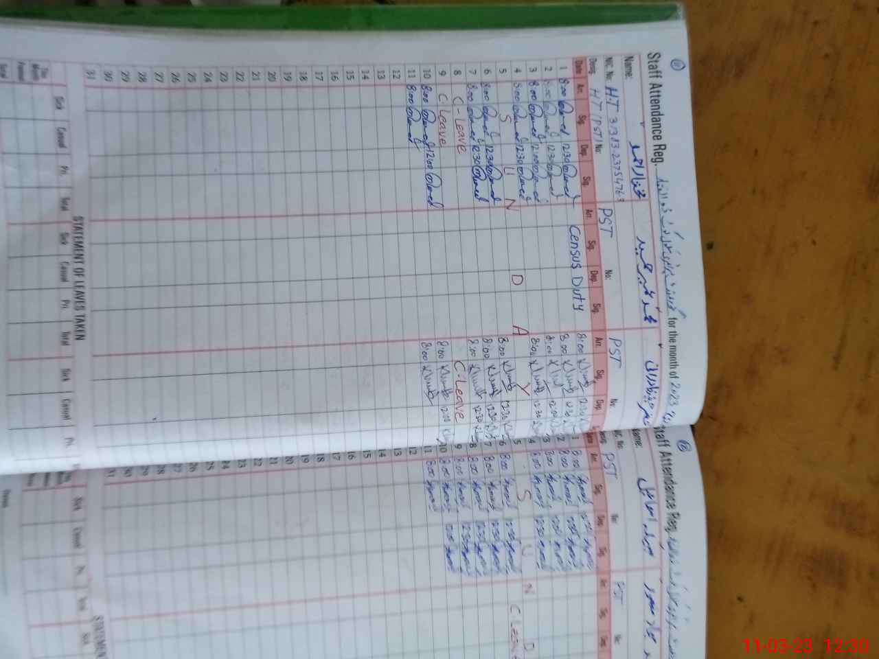 | Leave | Duty | Absent | Maternity | Medical | Ex- Pak |