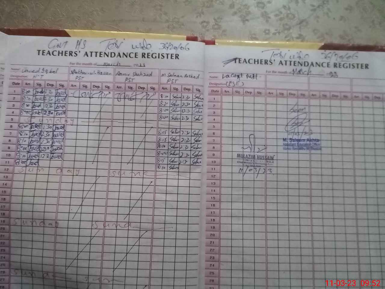 | Name: JA**** IQ**** Designation: (School Headmaster's/Headmistress's) PST/PTC/JV Phone/Cell Number: 03**** |
