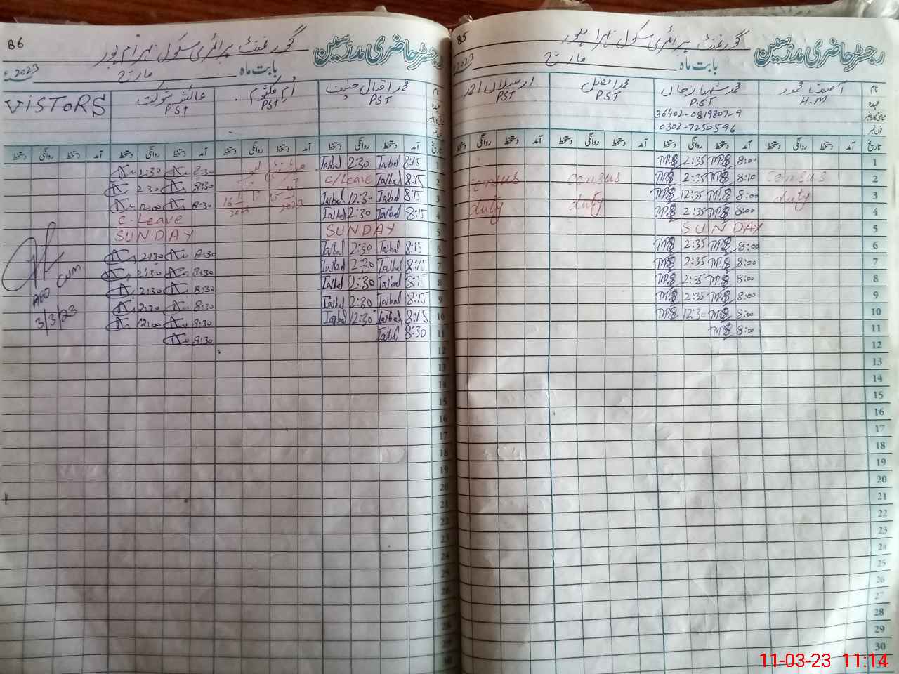 | School Visited by School Health & Nutrition Supervisor (No. of Visits) | Name1: | SYED FARHAN HAIDER | Name2: | Nil | |