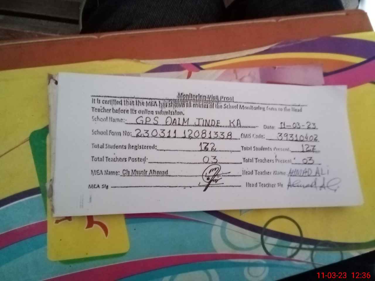 | EMIS Code: 39310402 | Name of School: GPS QAIM JINDE KA | |||