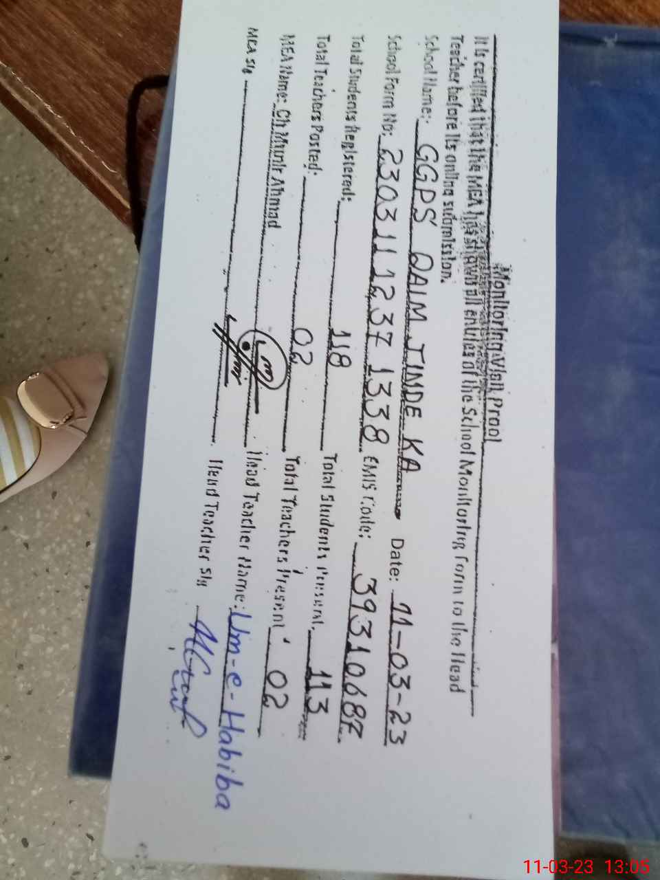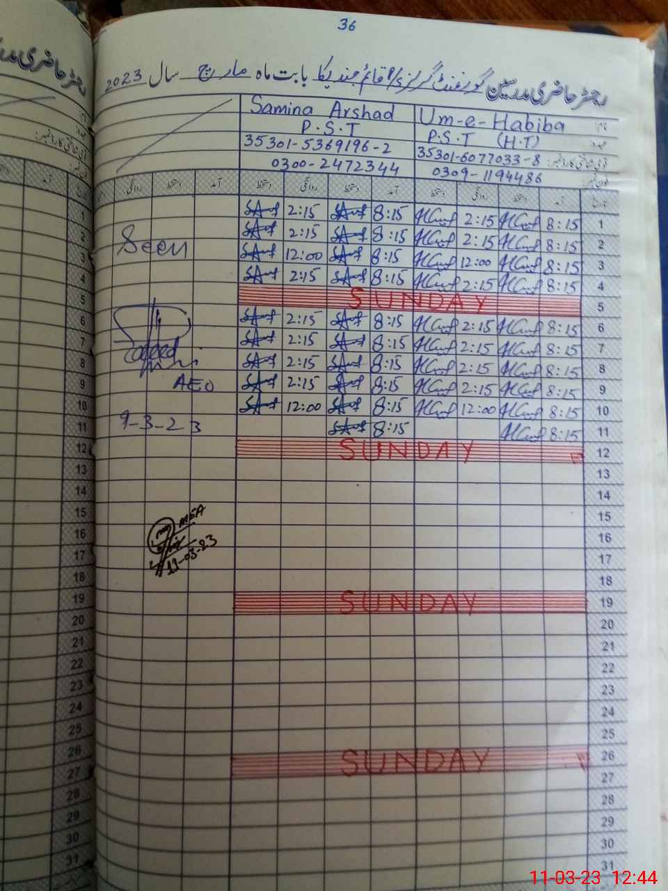 | Name: Um**** Ha**** Designation: (School Headmaster's/Headmistress's) PST Phone/Cell Number: 03**** |