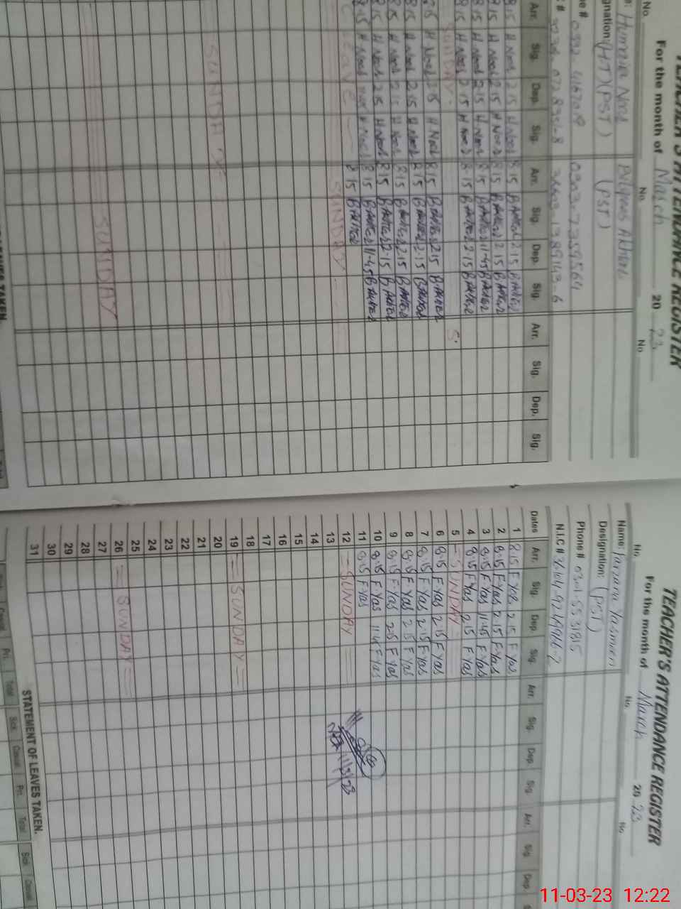 | Name: Bi**** Ak**** Designation: (School Headmaster's/Headmistress's) PST Phone/Cell Number: 03**** |