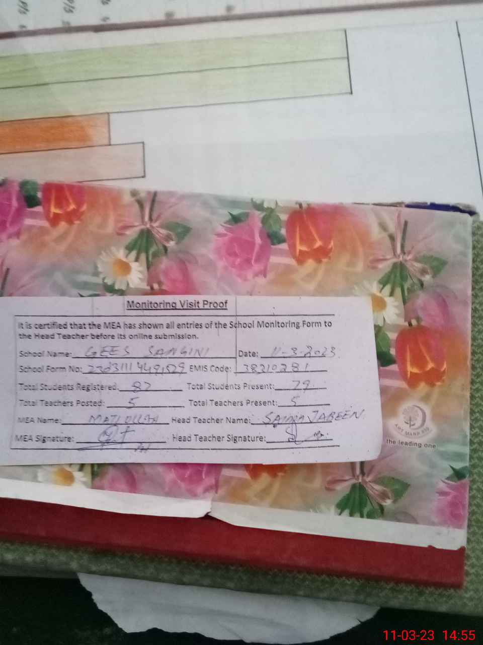 | Attendance Register | Head Teacher | MEA with School | Visit Proof |