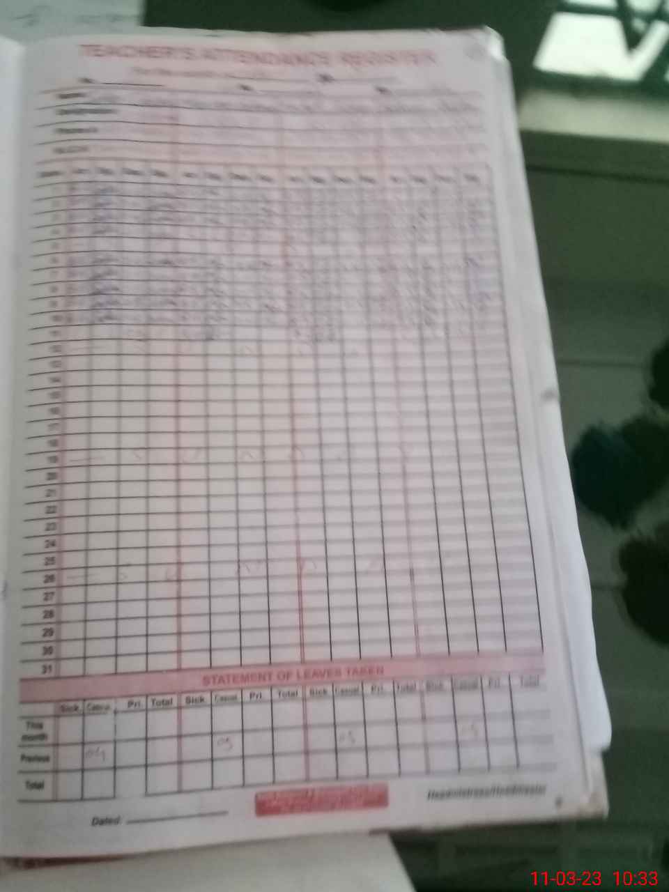 | Leave | Duty | Absent | Maternity | Medical | Ex- Pak |
