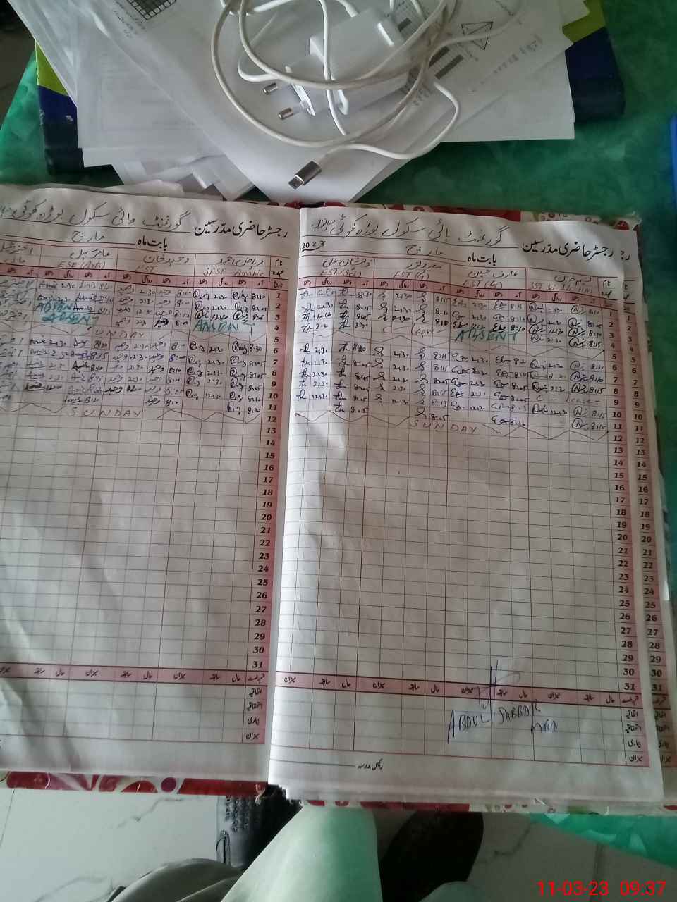 | CNIC | Full Name | Designation | R/C | Absence During Last Calender Month |