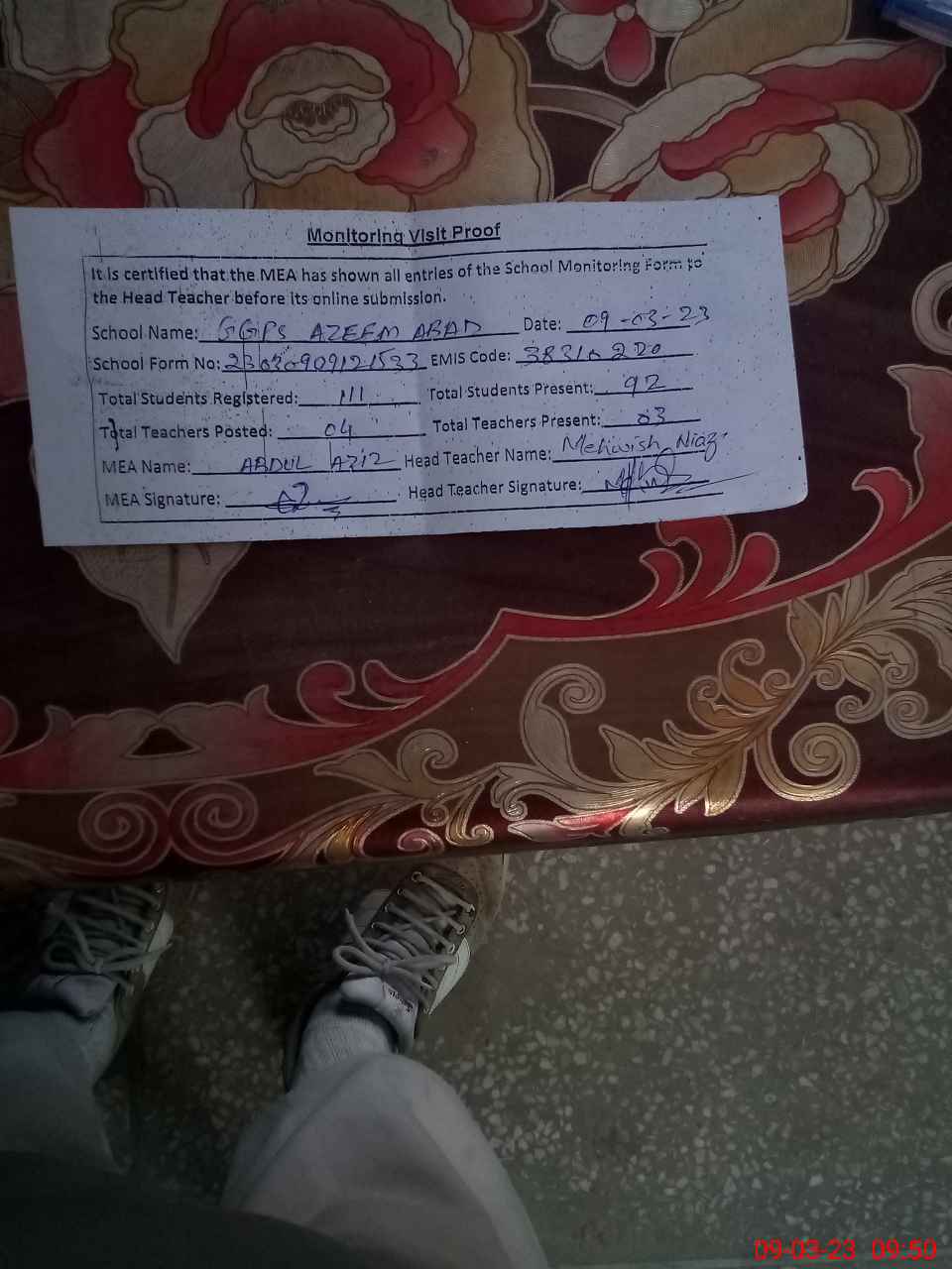 | EMIS Code: 38310220 | Name of School: GGPS AZEEM ABAD | |||