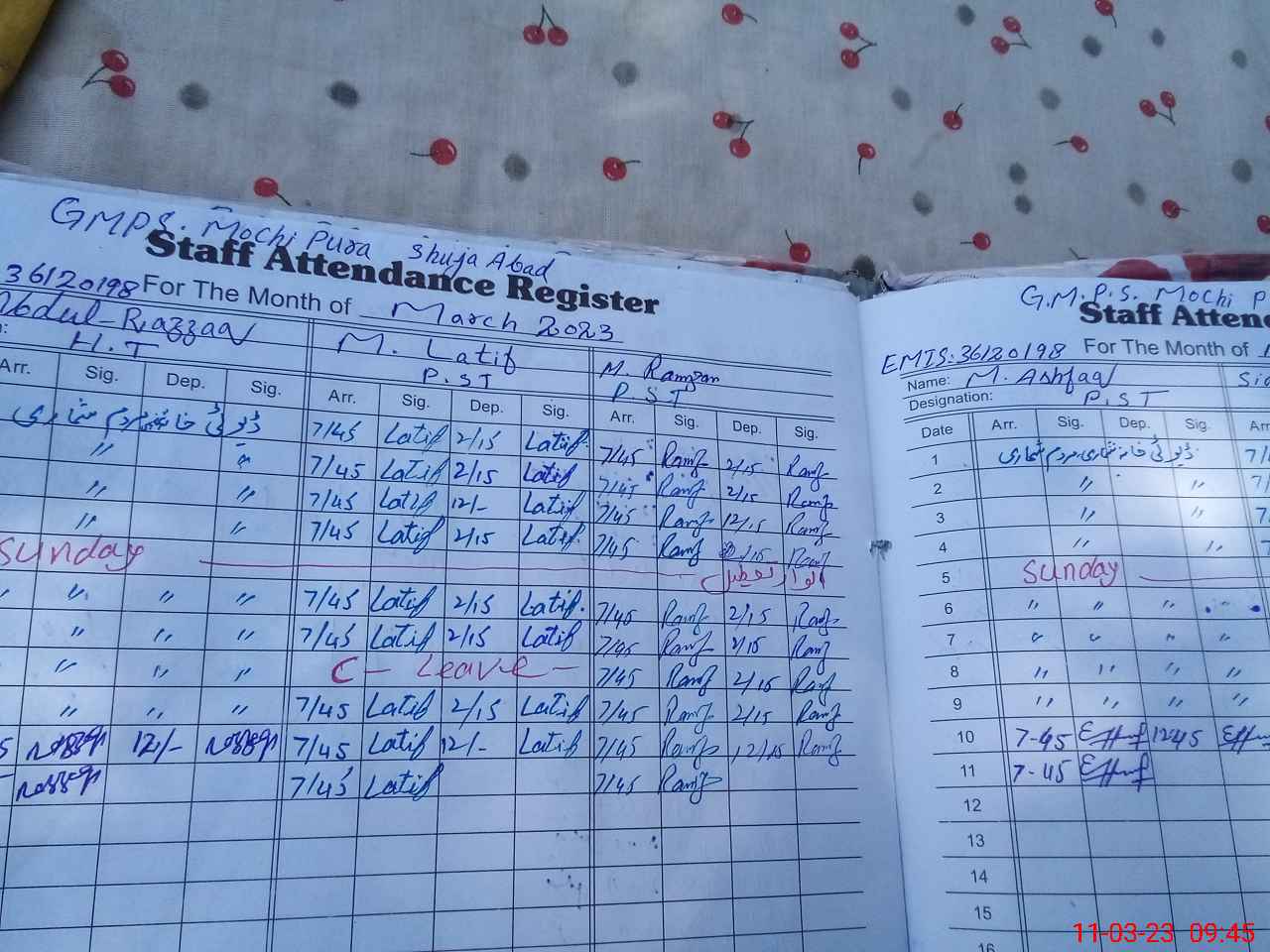 | Name: AB**** RA**** Designation: (School Headmaster's/Headmistress's) HEADMASTER Phone/Cell Number: 03**** |