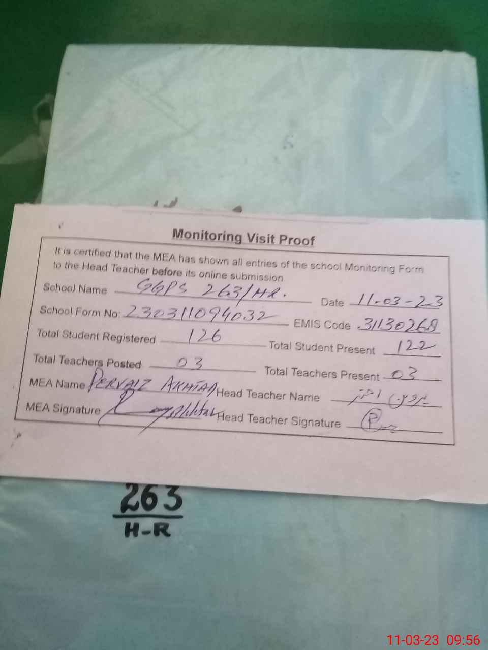 | EMIS Code: 31130268 | Name of School: GGPS CHAK NO. 263 HR | |||