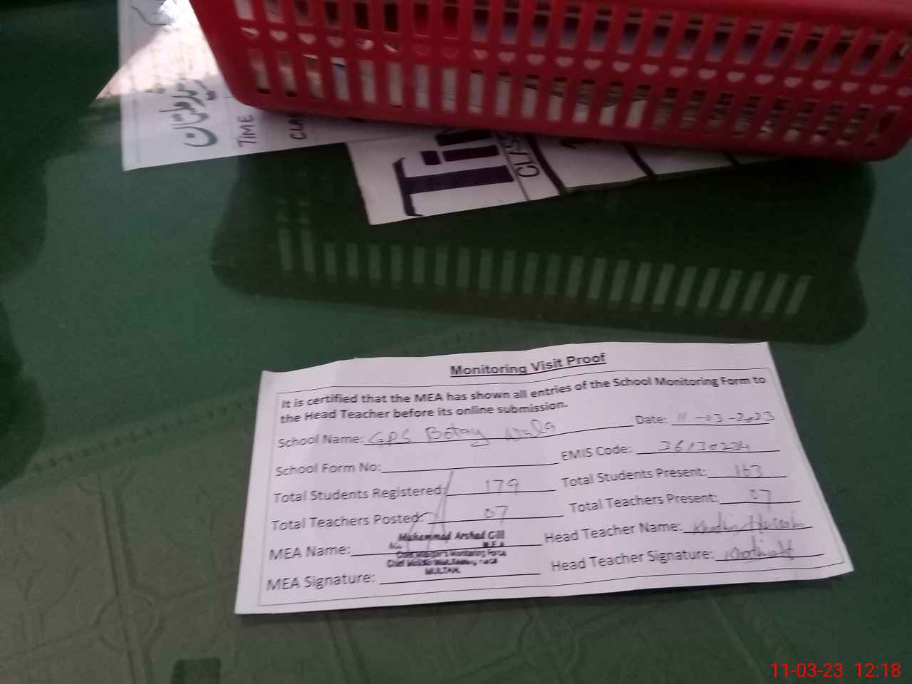 | EMIS Code: 36130234 | Name of School: GES BOTAY WALA P/ O GULZAR PUR | |||