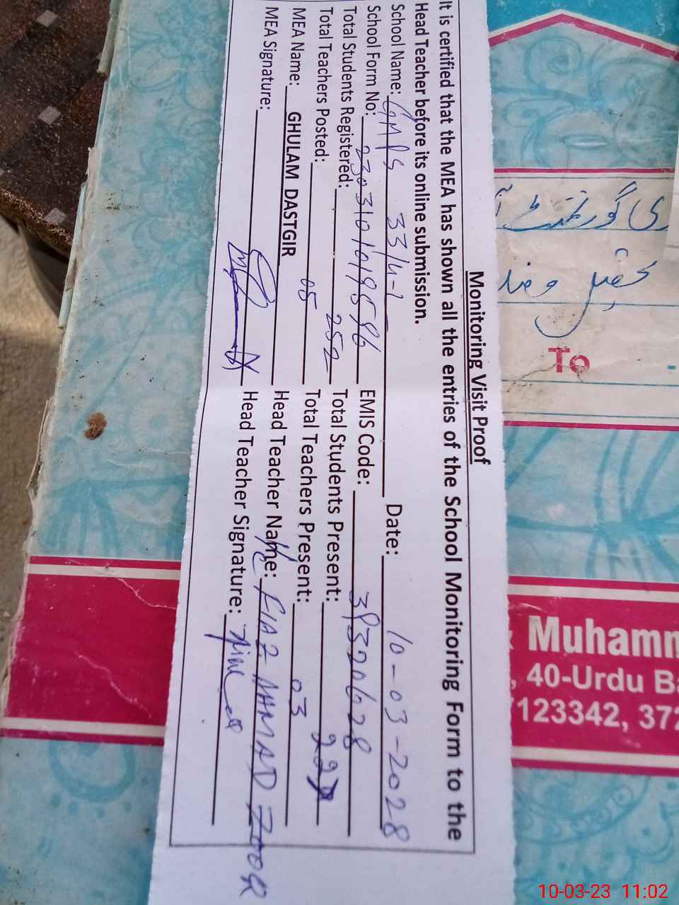| EMIS Code: 39320628 | Name of School: GMPS CHAK NO. 33/4-L | |||