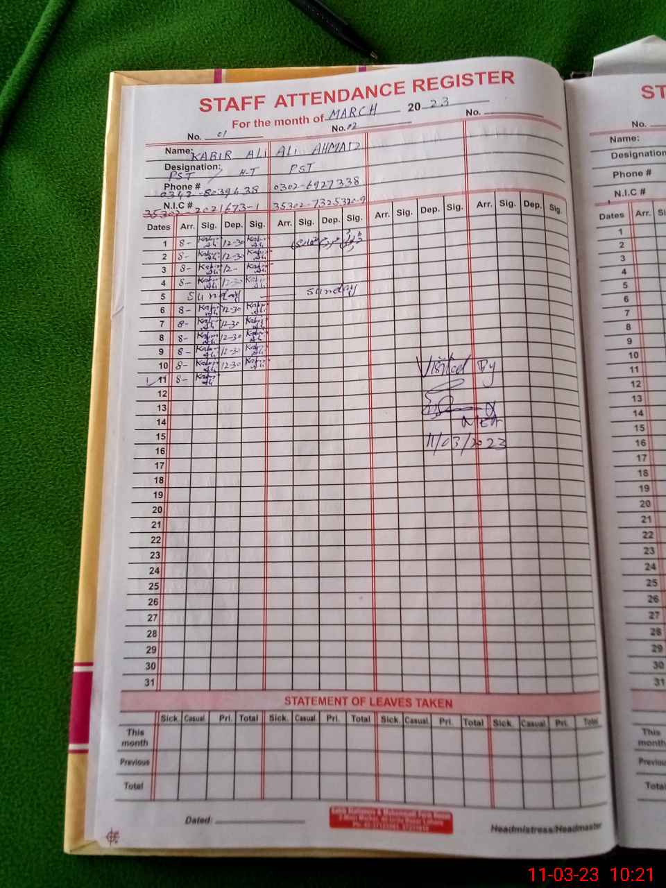 | Name: AB**** SA**** Designation: (School Headmaster's/Headmistress's) PST Phone/Cell Number: 03**** |