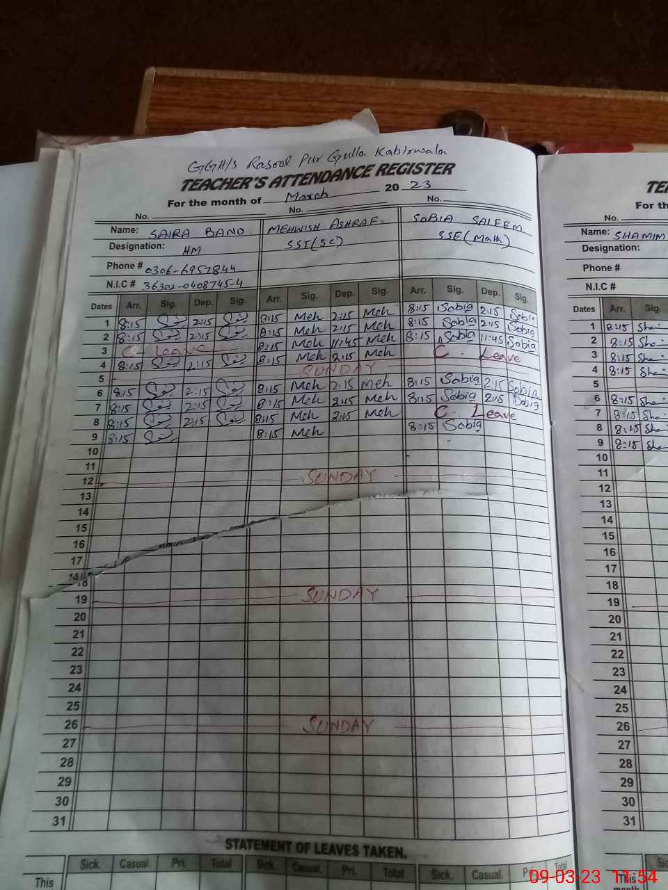 | Name: SA**** BA**** Designation: (School Headmaster's/Headmistress's) Head Mistress Phone/Cell Number: 03**** |