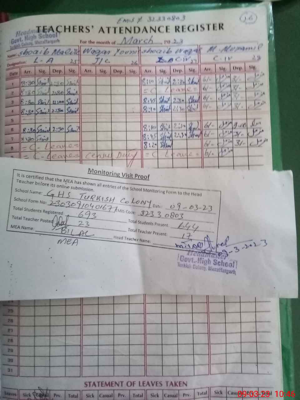 | EMIS Code: 32330803 | Name of School: GHS TURKISH COLONY MUZAFFARGARH | |||
