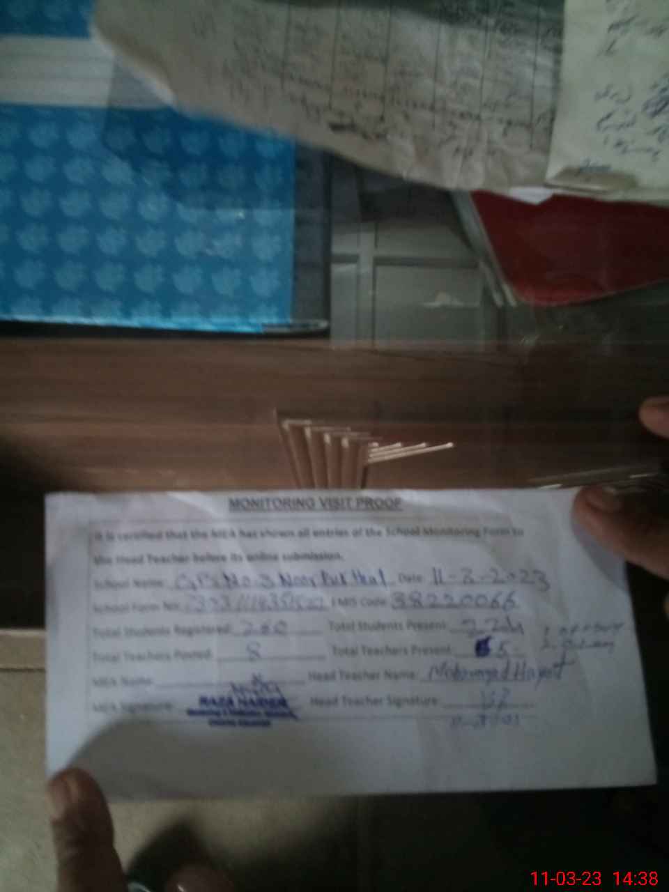 | Attendance Register | Head Teacher | MEA with School | Visit Proof |