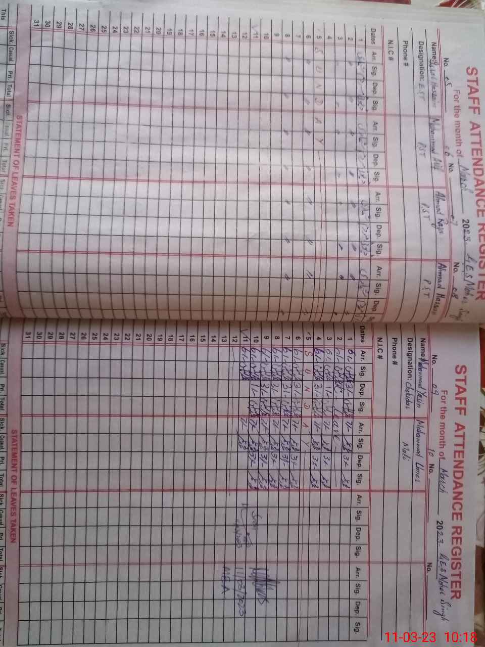 | CNIC | Full Name | Designation | R/C | Absence During Last Calender Month |
