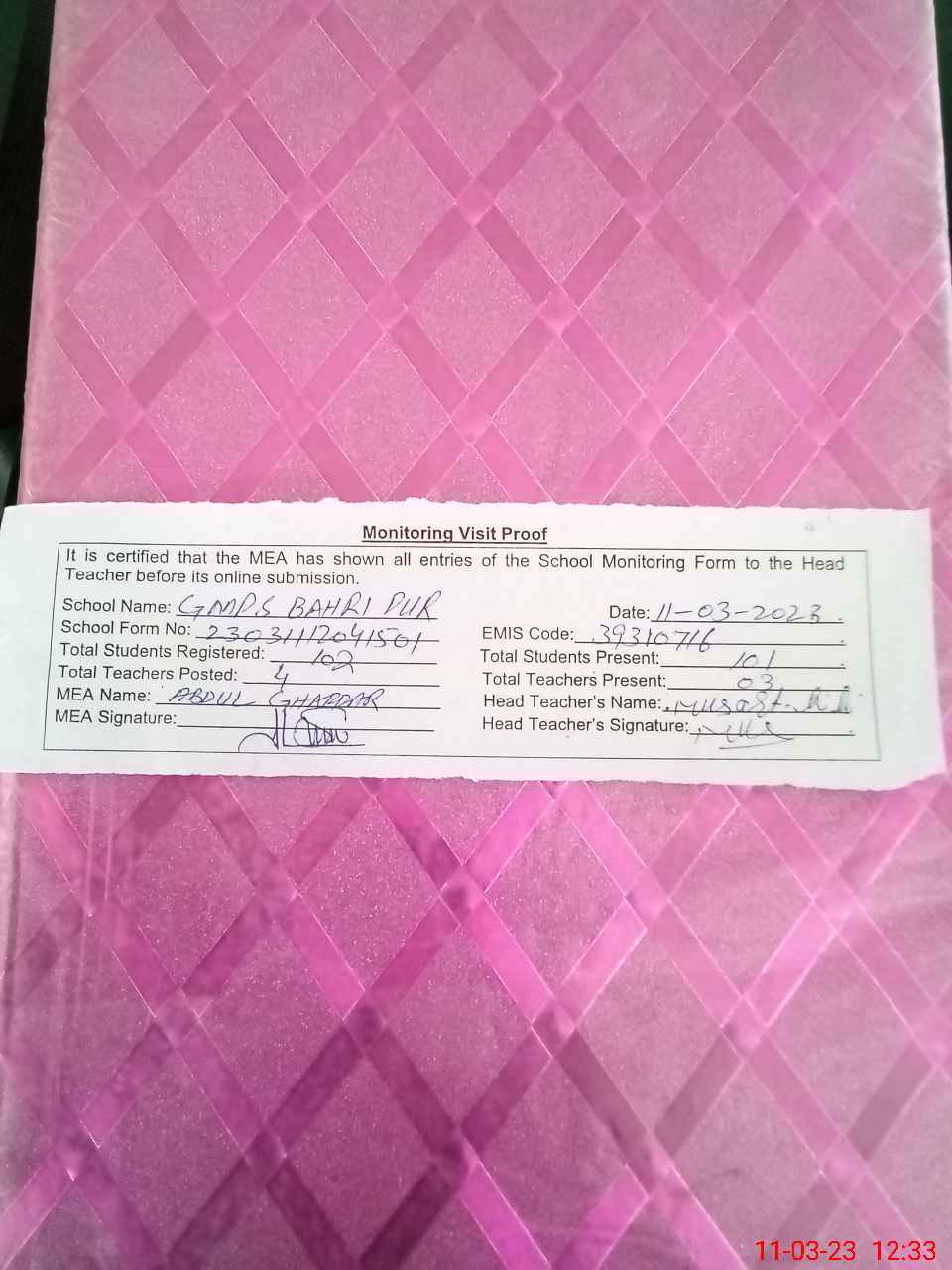| EMIS Code: 39310716 | Name of School: GMPS BAHRI PUR | |||