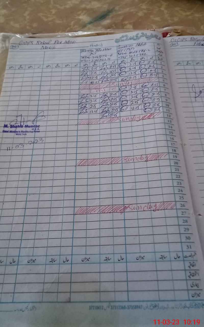 | Monitoring Date: 11-03-2023 | Start Time: 11-03-2023 09:28 AM | End Time: 11-03-2023 10:20 AM | Name of MEA: MU**** SH**** MU**** | |
