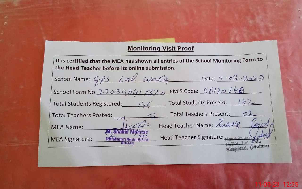 | EMIS Code: 36120140 | Name of School: GPS LAL WALA SHUJAHABAD | |||